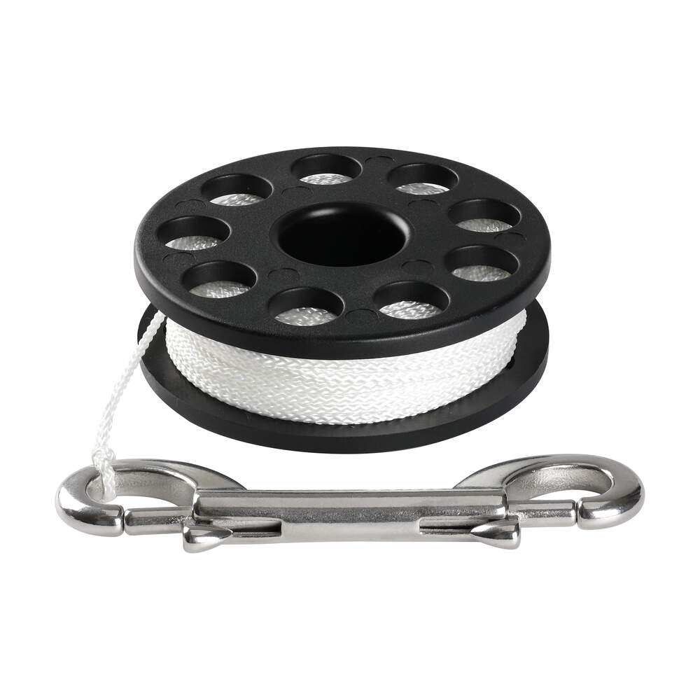 Small, lightweight spool. Double ended stainless steel carabiner.